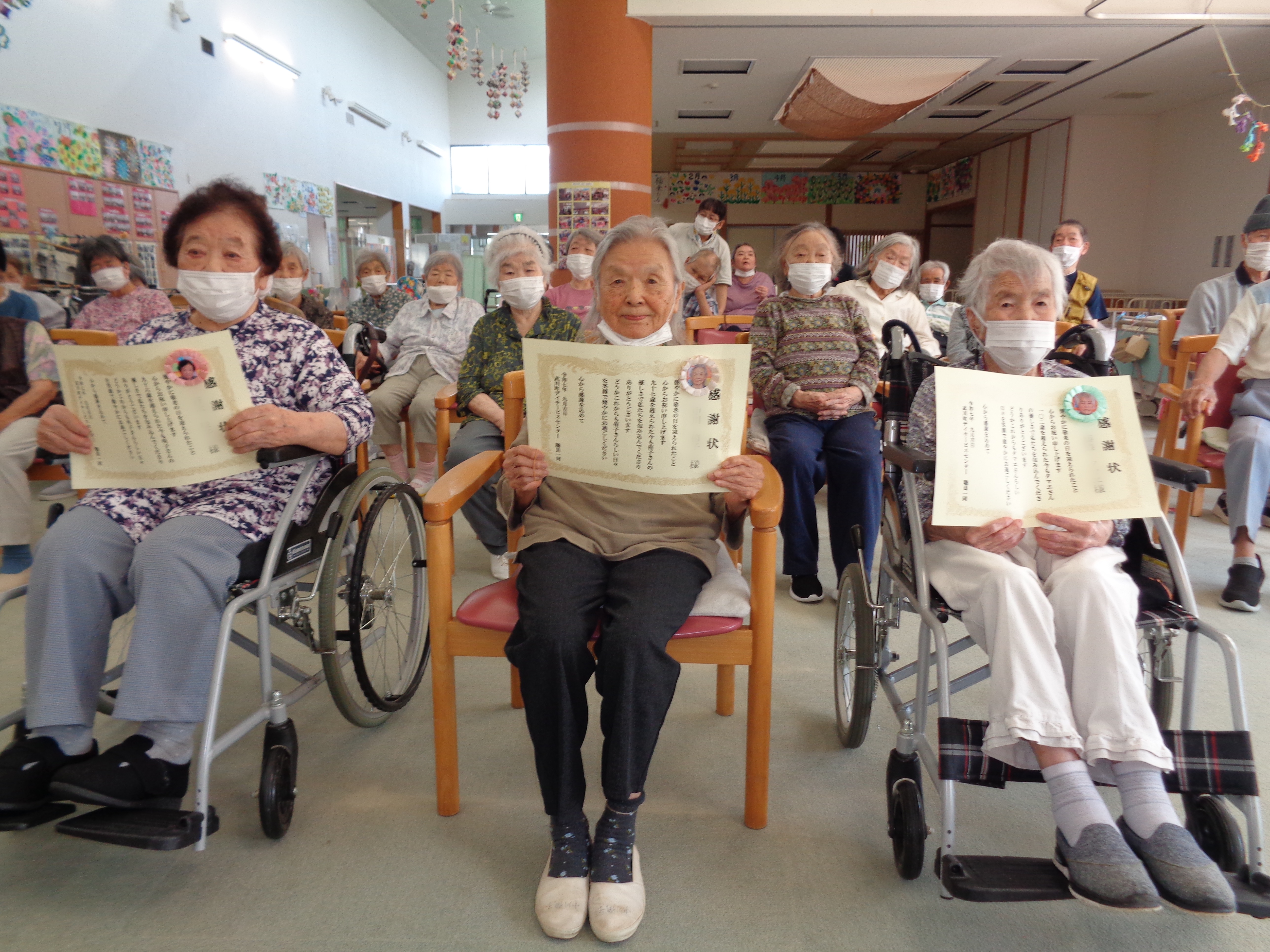 敬老の日に合わせて敬老会を行い、95歳以上の利用者様に感謝状を贈呈いたしました。