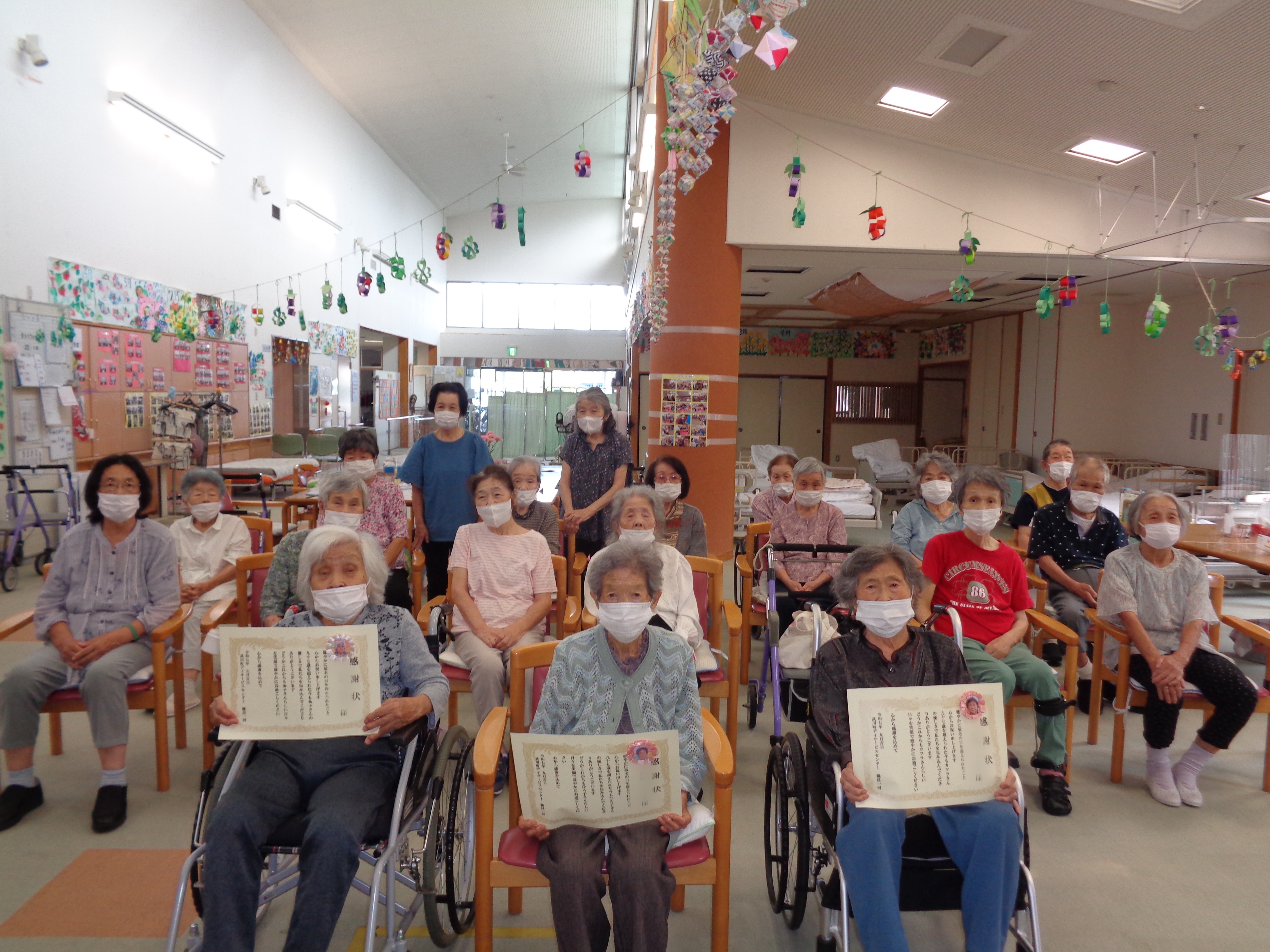 敬老の日に合わせて敬老会を行い、95歳以上の利用者様に感謝状を贈呈いたしました。