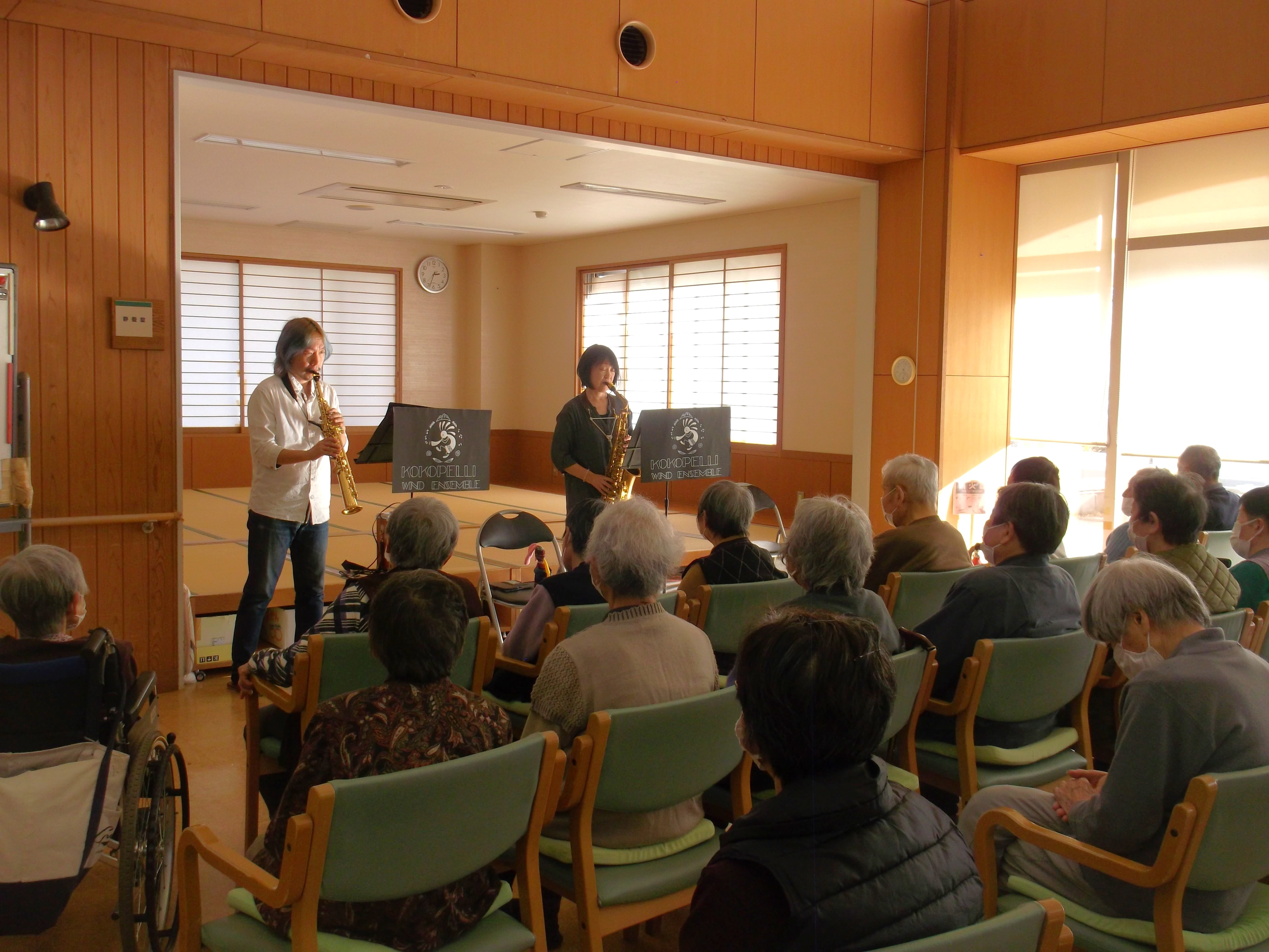 サックス演奏のボランティアとしてココペリさんに月に一回ほどお越しいただいています。